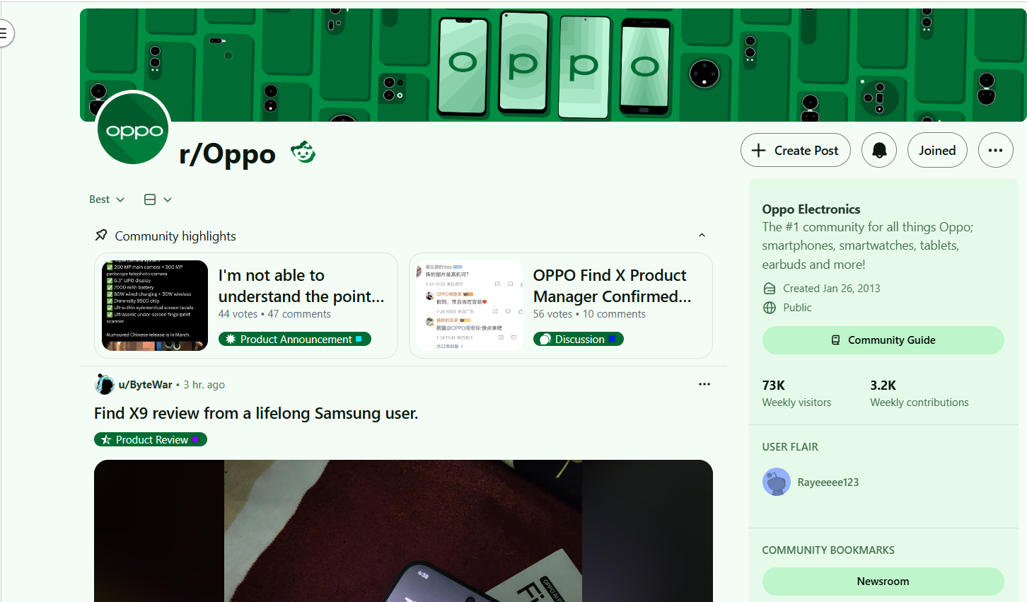 screenshots of OPPO and Huawei's subreddit