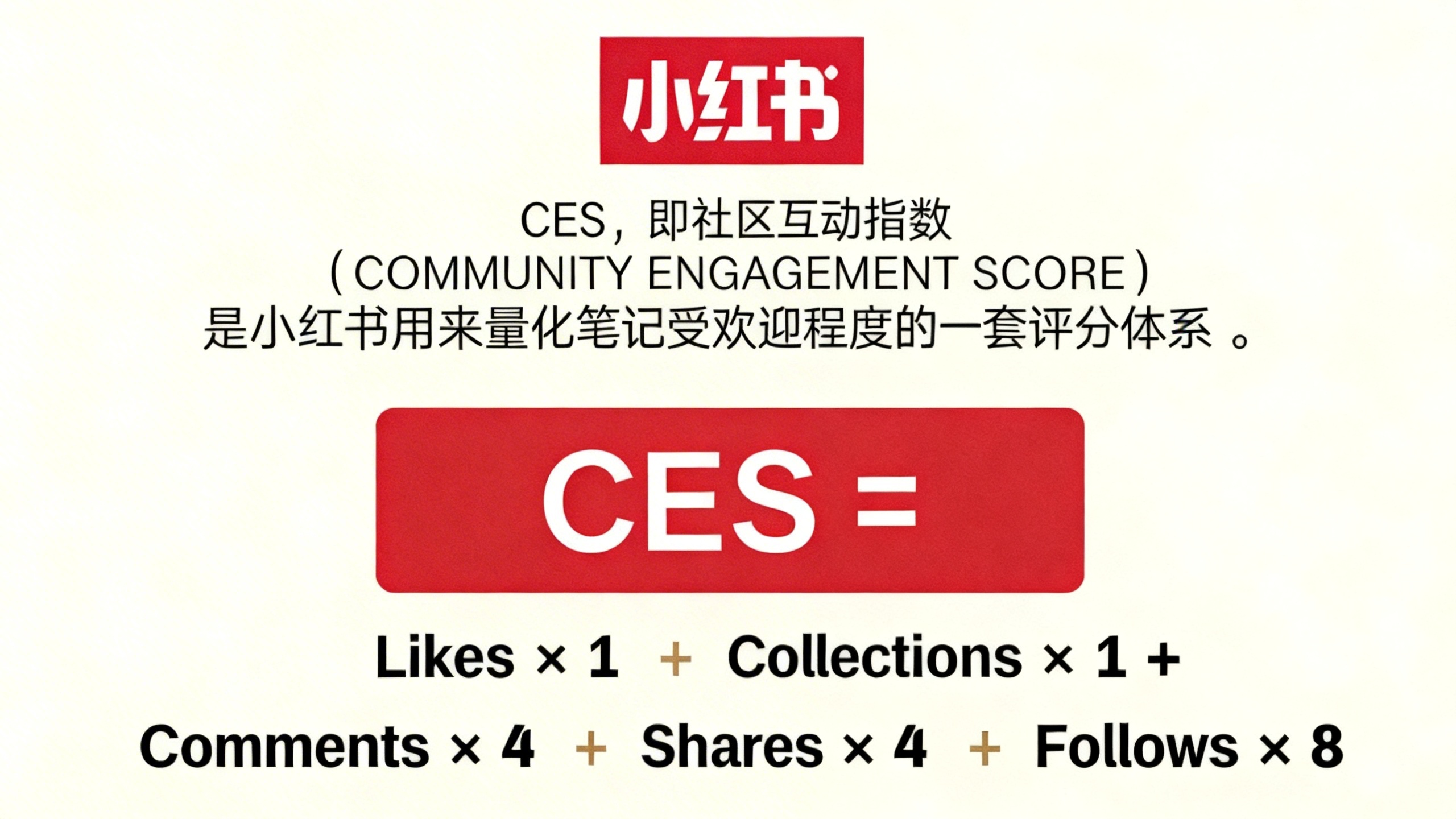 Xiaohongshu uses a CES (Clickthrough & Engagement Score) framework to evaluate content quality.