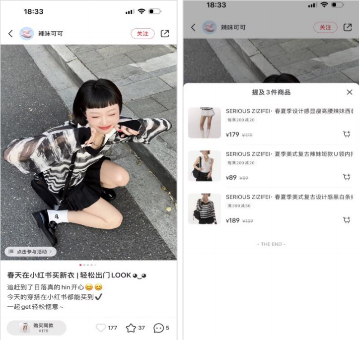 就是在达人的笔记中附加上商品链接,用户在浏览笔记的同时,可以直接下单,在小红书站内就能完成购买。