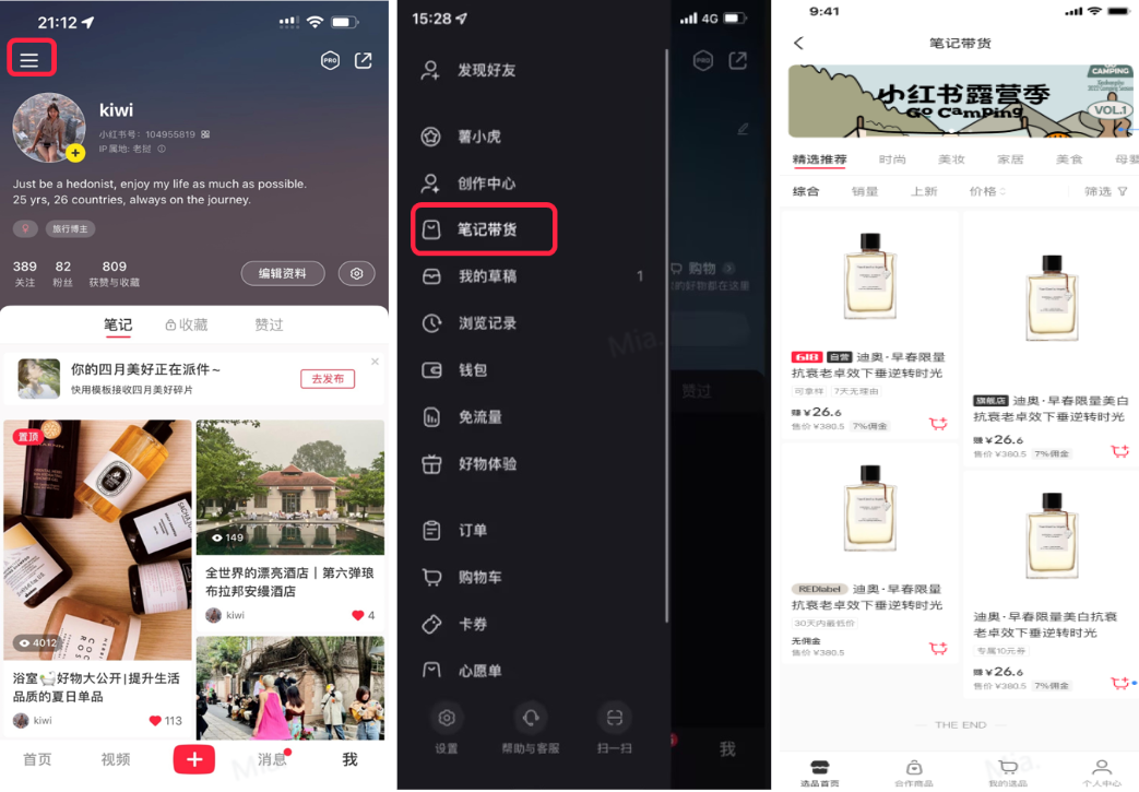 2.「笔记带货」没有“广告、赞助”标哦,当然同时也无法投放广告。(用户体验更好)