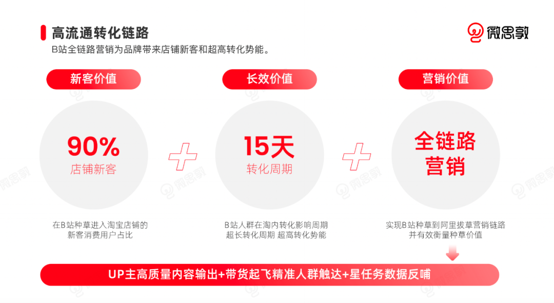 而根据淘宝联盟数据统计,通过B站种草,进入淘宝店铺的新客用户占比高达90%,由此可见,B站蓝链带货,带来的不仅是直接转化的效果,还有在新用户中坚实的品牌心智。
