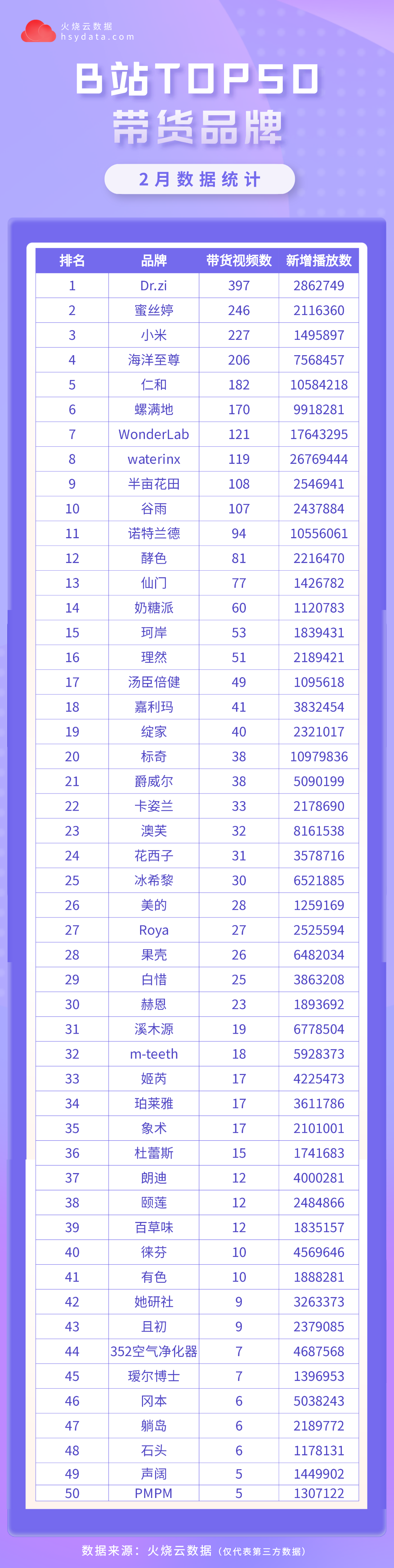 据火烧云数据统计,相比于淘系/京东TOP10品牌的长期霸榜,B站带货TOP品牌与淘系TOP品牌重合度并不高。