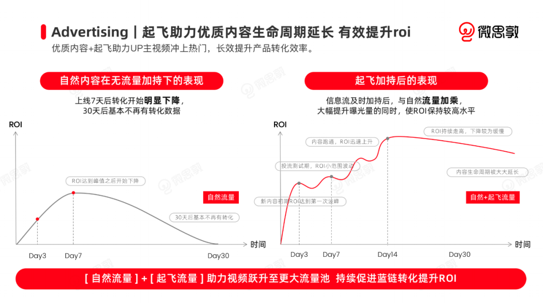 但如果有了B站起飞的加持后,不仅保证了内容的长效曝光,也持续促进蓝链转化,ROI一直维持在高位,带货内容的生命周期被大大延长。