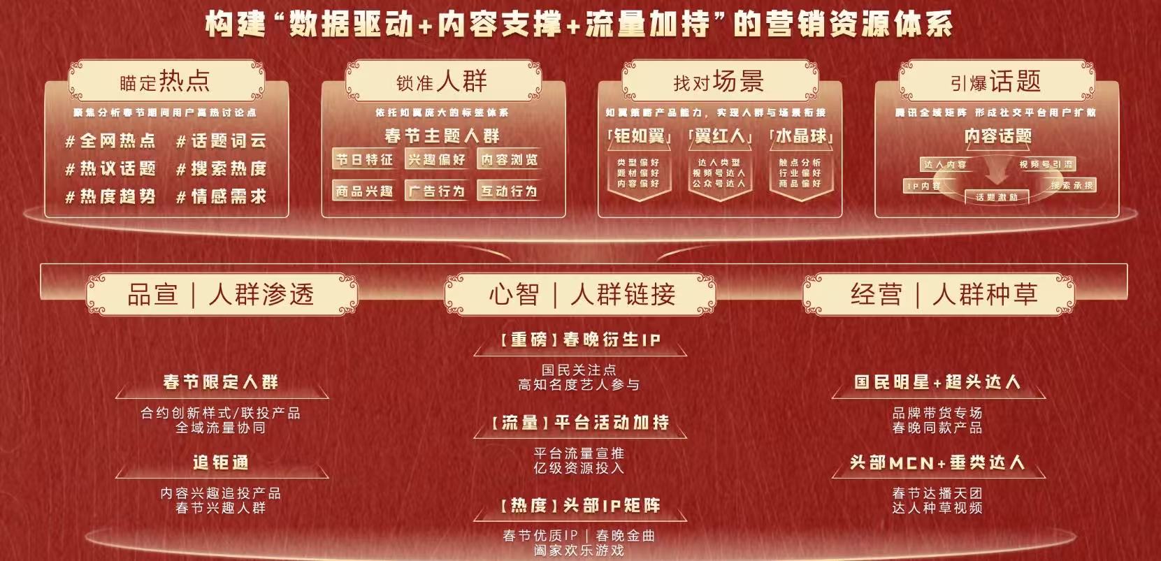 腾讯广告整合营销策划团队通过线上讲解的方式为我们详细介绍了话题营销、平台创新产品、互动玩法等内容,涵盖年货节、春运、非遗年俗等多个主题,并重点分享了基于人群洞察和行业属性给出的营销策略打法,为吉讯提供了新的营销思路。