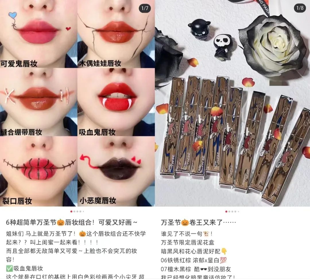 2、独家限定彩妆品:人们喜欢在这个节日尝试不同彩妆,美妆品牌可以推出一些独家限定的彩妆品,以迎合消费者的节日需求。例如,推出特别设计的万圣节彩妆盘、特色口红、独特指甲油等产品。