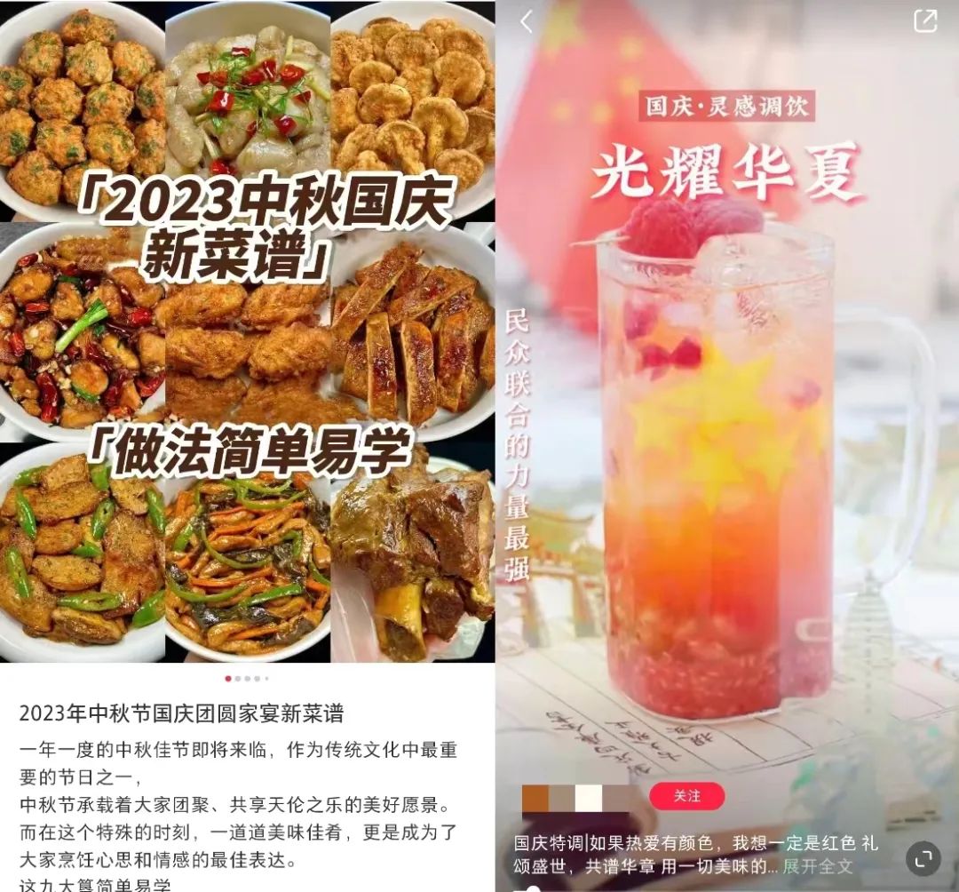 1、国庆特色美食分享:国庆节是一个人们热衷于品尝美食的节点,食品饮料品牌可以推出一系列与国庆特色美食相关的内容。例如,分享国庆节必吃的传统美食、特色小吃、家庭烹饪秘籍等。