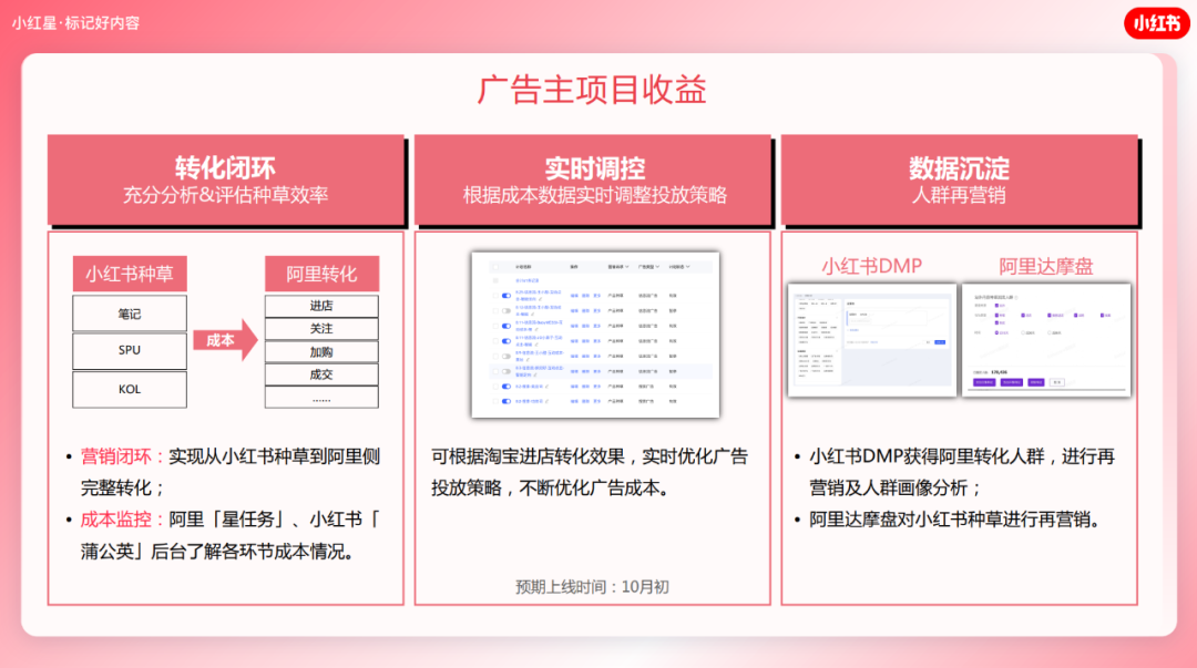 1.转化闭环,打通从小红书种草到阿里系平台成交的完整转化链路;