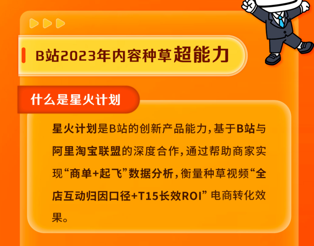 根据前不久发布的2023Q2的财报显示,上半年B站交易视频数量同比增长800%,直播带货场次同比增长700%,通过“星火计划”的验证,在B站种草,从而进入淘系店铺的用户新客率达70%!足以证明B站星火计划的巨大潜力。