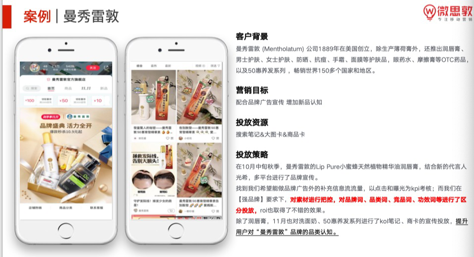 服务目的:提升 用户对“曼秀雷敦”品牌的品类认知。