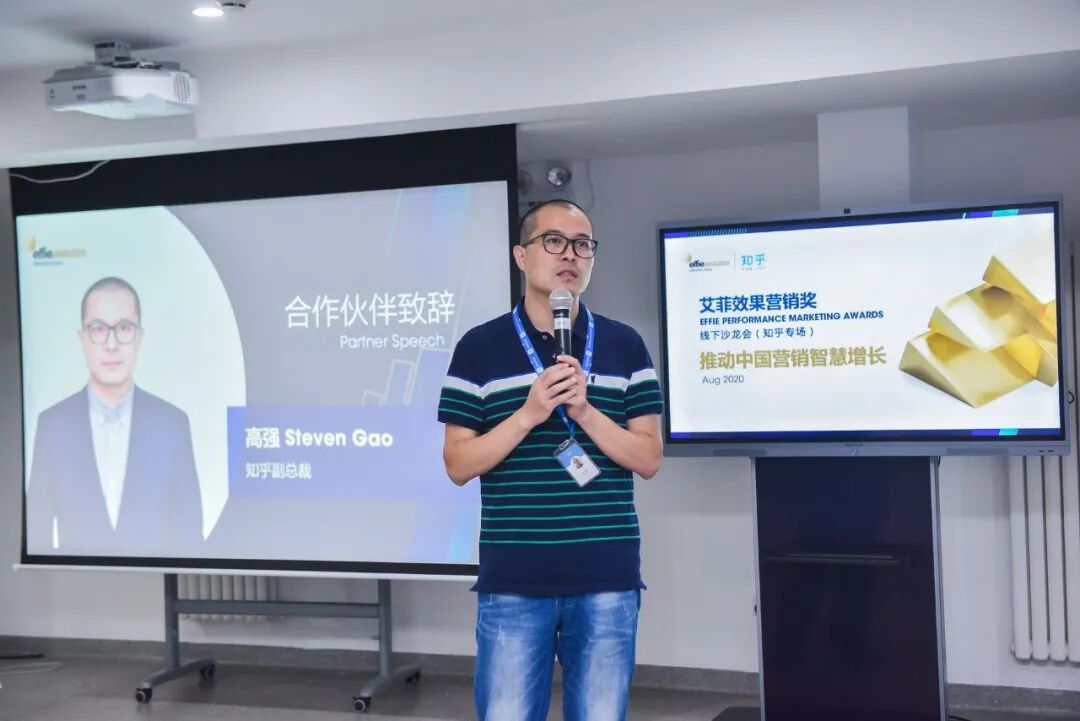 紧接着,知乎副总裁高强发表了讲话,肯定了艾菲效果营销奖真正面向效果营销、对效果营销有深度解读的意义,并表示,“知乎在效果营销领域一直不停的探索,知乎的内容可以深度影响用户的消费决策,产生水平信任,有效帮助企业增长和用户资产运营。”
