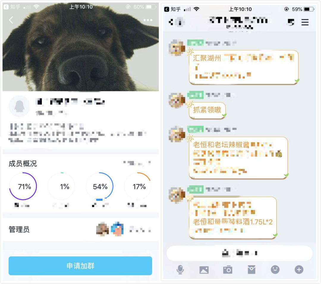如上图所示,当看到相关的回答后,会出现相关营销插件,感兴趣的用户就可以点击「申请入群」,页面便会自动跳转到QQ群的页面,然后便会出现图示的申请加群的信息,用户便可以加群并获取相关产品的优惠链接,并进行下单。