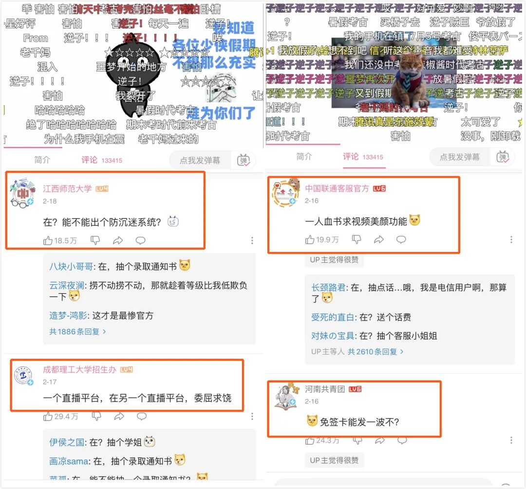 第三,在B站进行品牌social的成本更低,首先,B站的Z世代人群多,且这些人群需要共鸣,不需要甚至不喜欢营销软文,他们喜欢在评论区留下足迹,在弹幕里排成彩虹的样式,还喜欢用狗头表示自己是友军