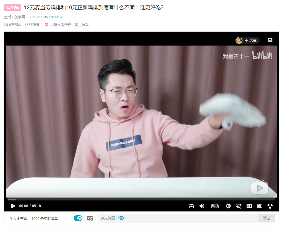 UP主简介:我是芒十一,美食区UP主,视频内容以较吸引人眼球的新奇挑战为主,目前粉丝量26万+。