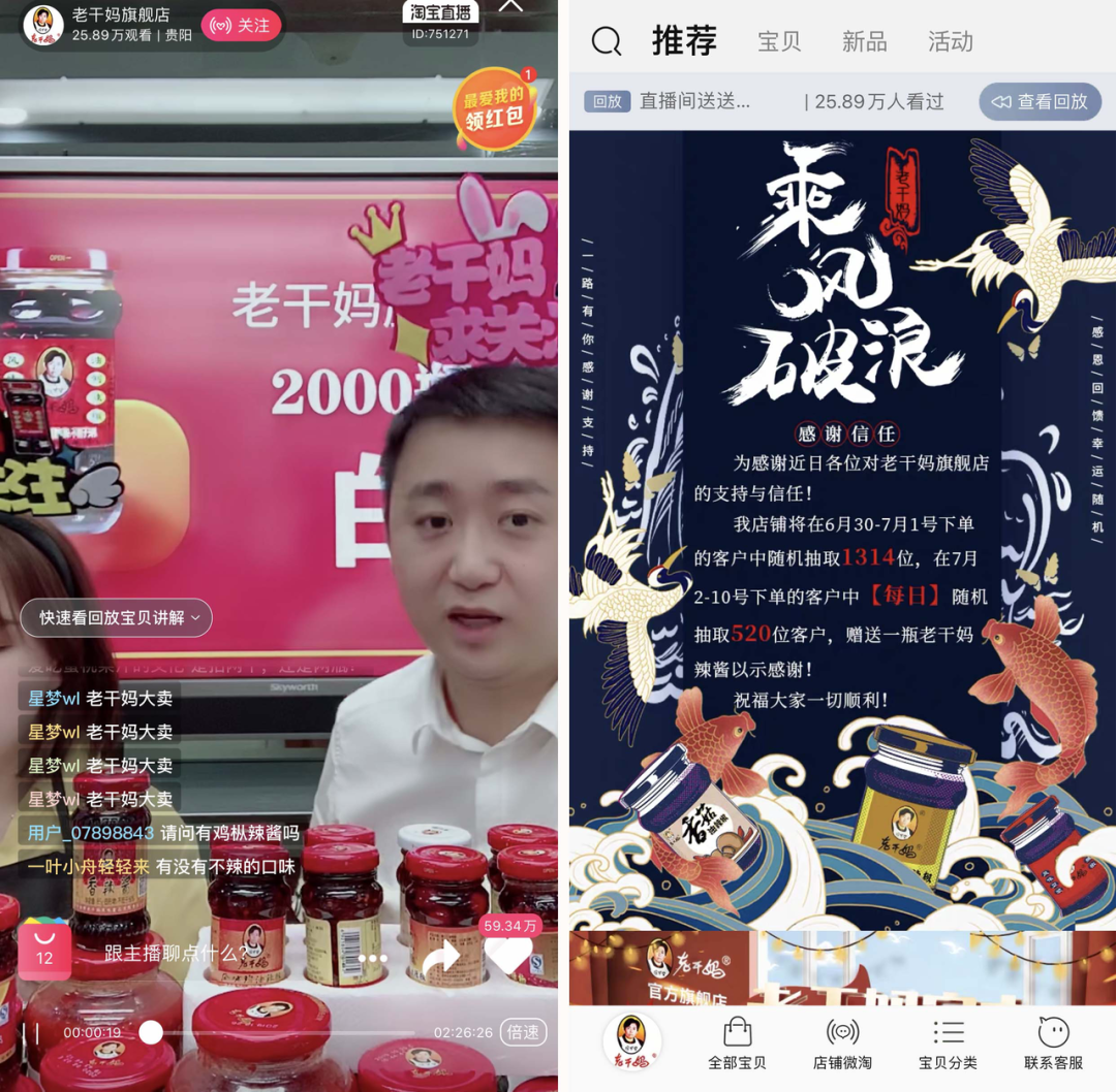 我们先且不论此次腾讯被骗事件会带来怎样的影响,但是腾讯确实是成功利用B站打造了自己傻白甜的形象,而咱们的中华名产——「老干妈」,也借此机会开始在淘宝直播,不仅实现了销量爆棚,还开始用抽奖回馈深爱着自己的顾客,不得不承认,陶华碧真的是深谙营销的女王。