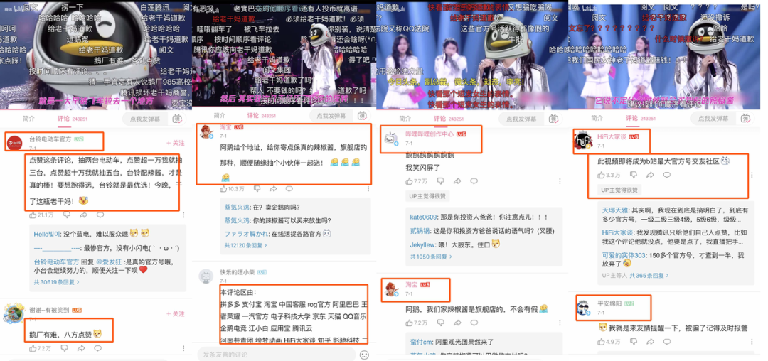 在互联网的八方围观下,我们的众品牌观光团更是在B站形成了下面的浩大声势,从阿里领衔的吃瓜团队,到抽奖团队,可以说B站又一次凭借着评论火出了圈。如果说上一波的后浪让B站朝着主流文化更近了一步,此次的「评论区组团观光」开发了B站的全新功能——品牌公关。