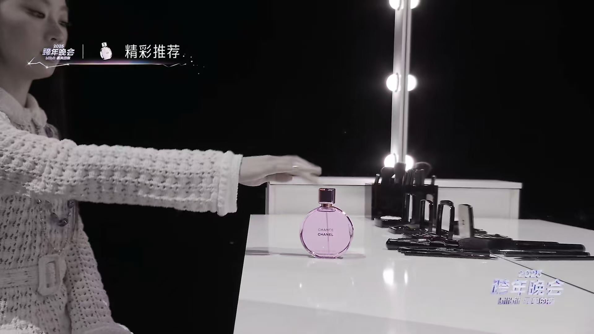 还有香奈儿香水,用一整支定制MV的方式,植入在单依纯的演唱表演中。产品的特写更是被眼尖的观众捕捉并刷上弹幕。