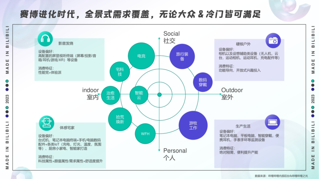 而在3C品类关注范围上,B站用户的兴趣也非常广泛。显卡、耳机、键盘、鼠标、显示器……无论是个人还是社交、室内还是室外、热门or冷门,B站均能找到对应内容、对应人群与之匹配。