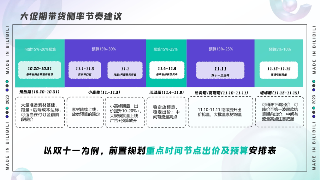 B站官方:双十一预算分配、营销节奏建议