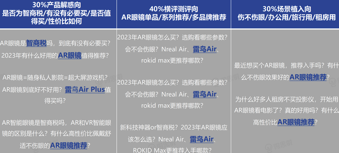 从搜索层面看:除了对于产品功能的解读,例如会提问:“是否智商税、推荐、选购、评测;”