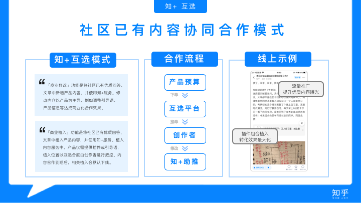 现在入场「知+」就是最好的时机。「知+」是知乎在2020年针对内容服务的解决方案,一站式解决内容带货完整链路。