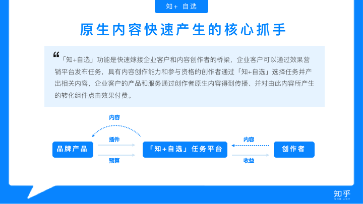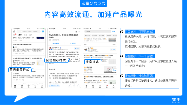 更强大的内容流通与加速:在平台自然流通外,帮助原生内容通过「首页推荐」「回答推荐」「搜索」等用户场景精准、友好地触达目标受众,让优质内容更快脱颖而出。