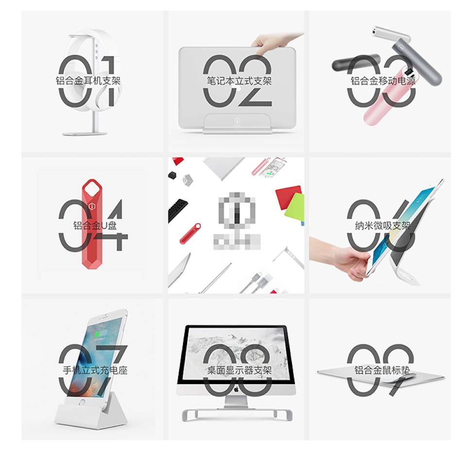 1、这版素材给人第一印象,干练简洁,有质感,九张图,商品、商品名称、数字等相结合,画面有完整性;
