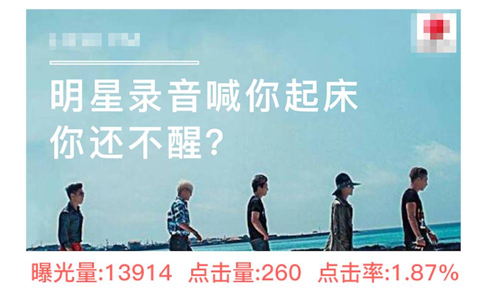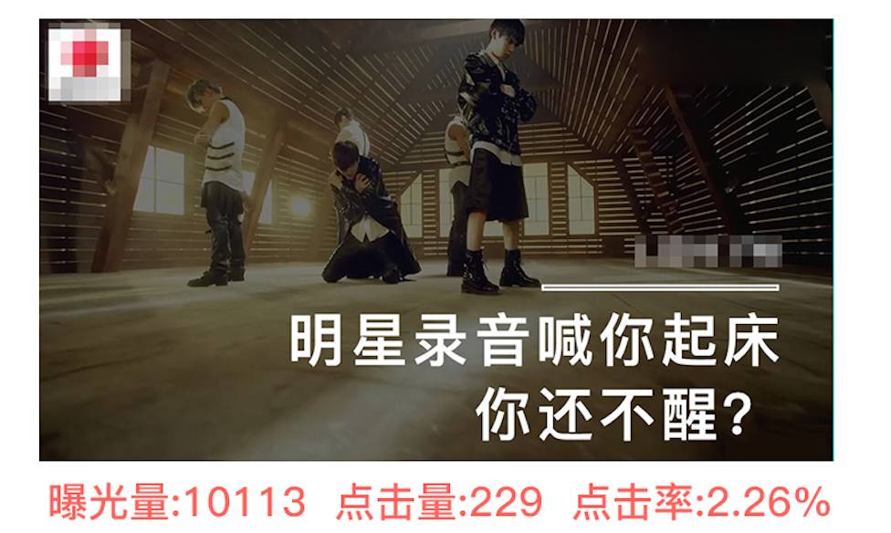 3、两版文案都使用白色的加粗字体,在底色偏暗调的画面中显眼醒目,且两版文案有新意,“明星喊你起床”这个创意点能很好的吸引到年轻网友的兴趣,对之好奇,反问句,能一语戳中内心;