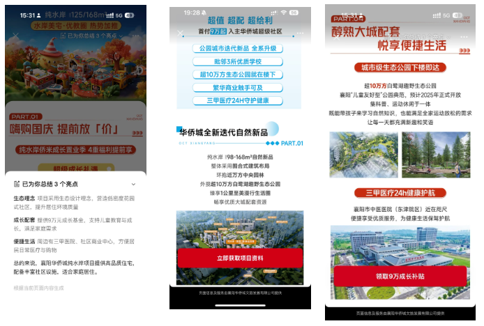 ✧高转化落地页逻辑:采用“表单+官方落地页”链路,首屏直击核心价值或优惠,快速抓住注意力。正文则系统化阐述项目规划、生态理念及配套细节,并创新性运用 AI总结功能,一键提炼项目核心优势,适应现代用户快速阅读习惯,大幅提升留资效率。
