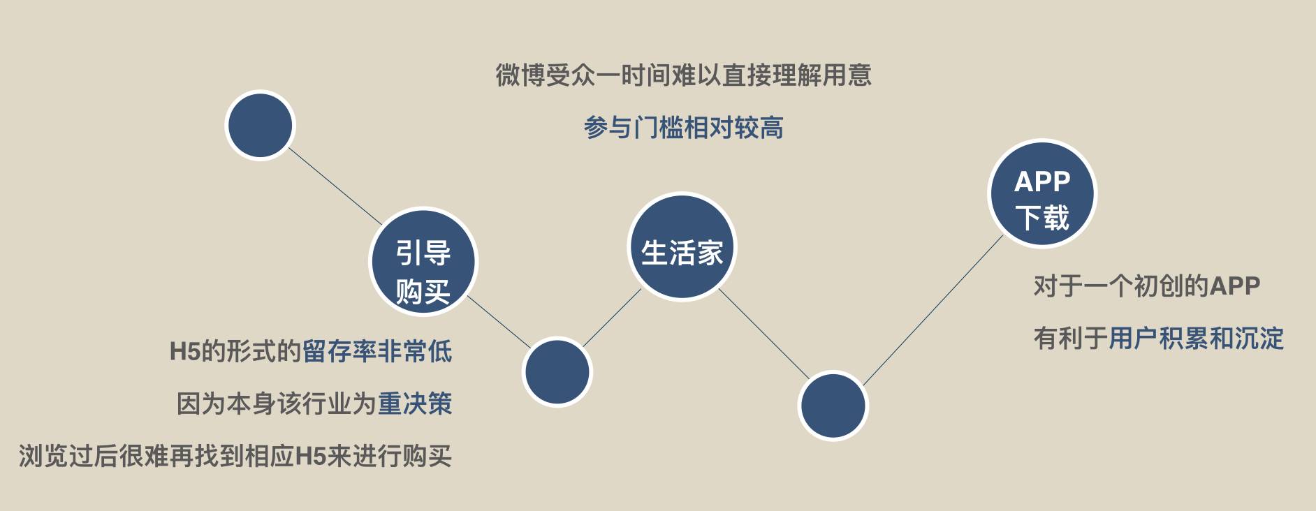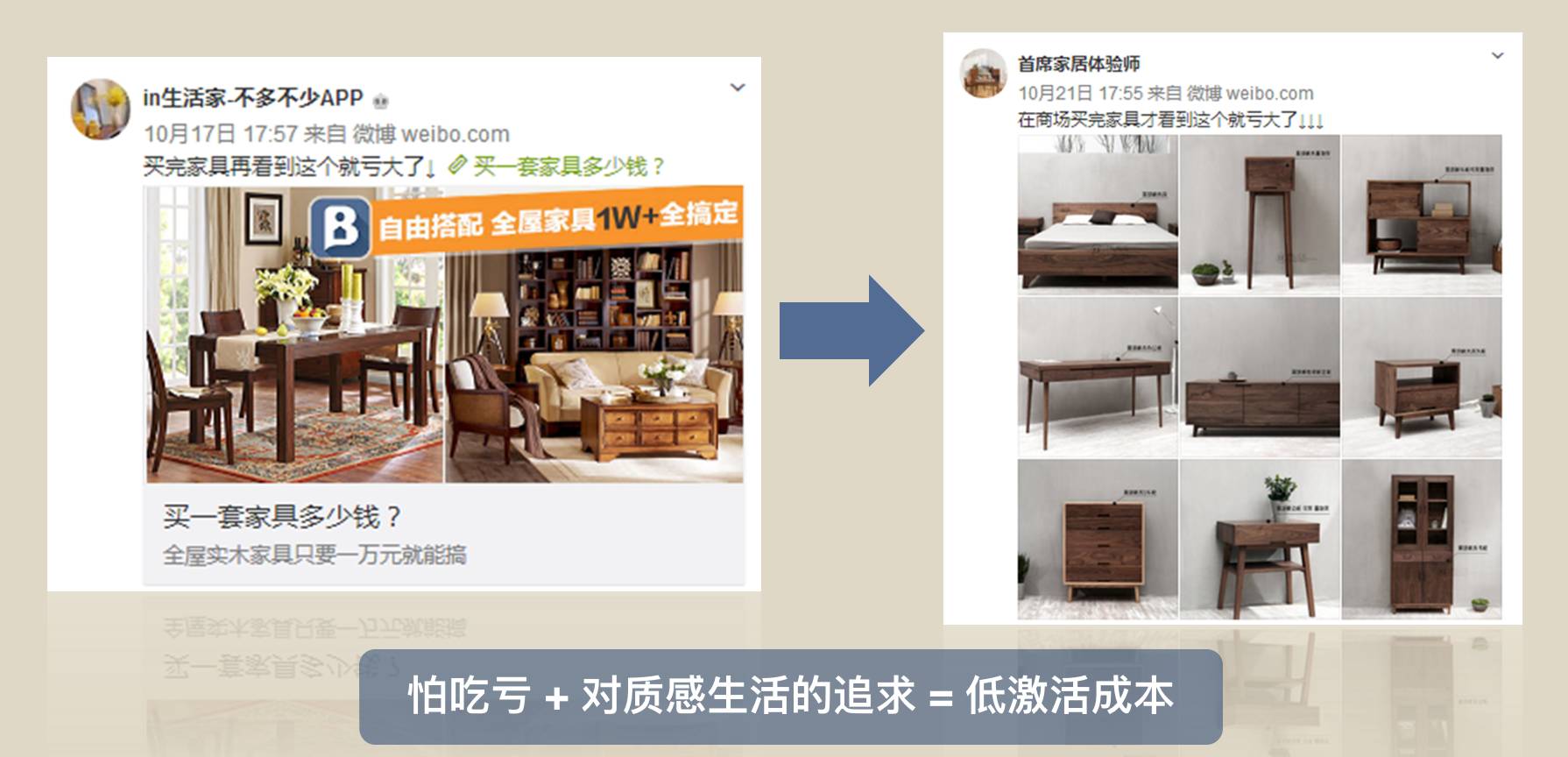 A:探索。刚开始,我们做了很多尝试。在投放维度、购买引导、活动报名、APP下载方面都做了尝试,并且以头条文章打造行业内幕引起话题,生活家故事,传统家具图对比生活家的图等等方式试图打开市场。