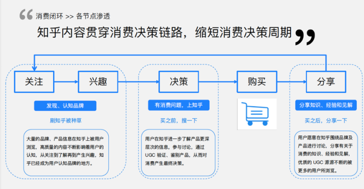 知乎的内容分发机制和社区氛围让用户对内容进行深度阅读,用户通过深度阅读改变自己的认知。在这一闭环中,优质的内容以媒体平台为依托,同时企业通过内容触达用户,向用户传递产品价值,用户在媒体平台阅读通过内容满足了自我需求。